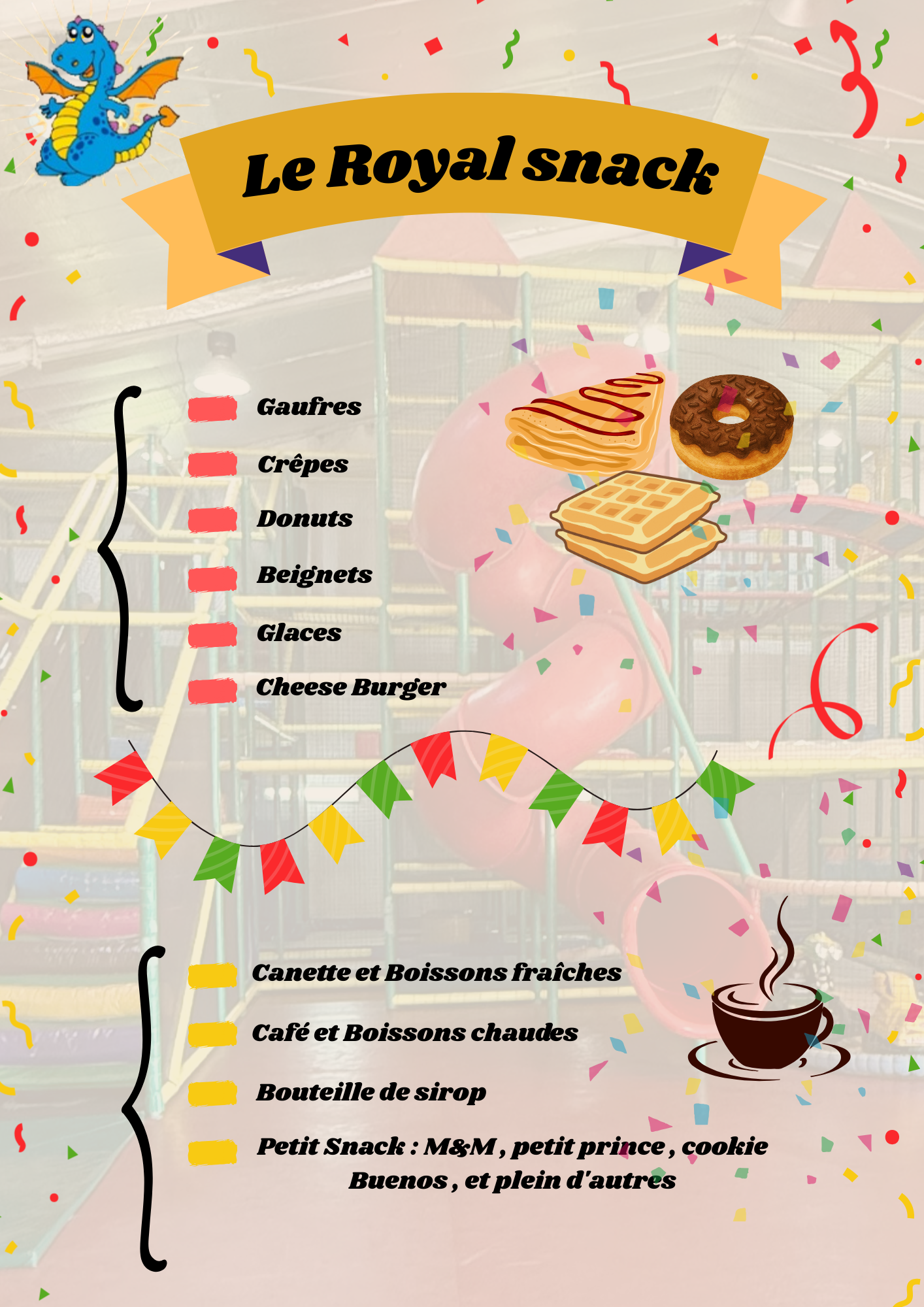 🏰 Besoin de faire une pause entre deux aventures ? Parce que s’amuser, ça creuse, notre espace Snack et Détente vous accueille dans un cadre entièrement sécurisé et climatisé.